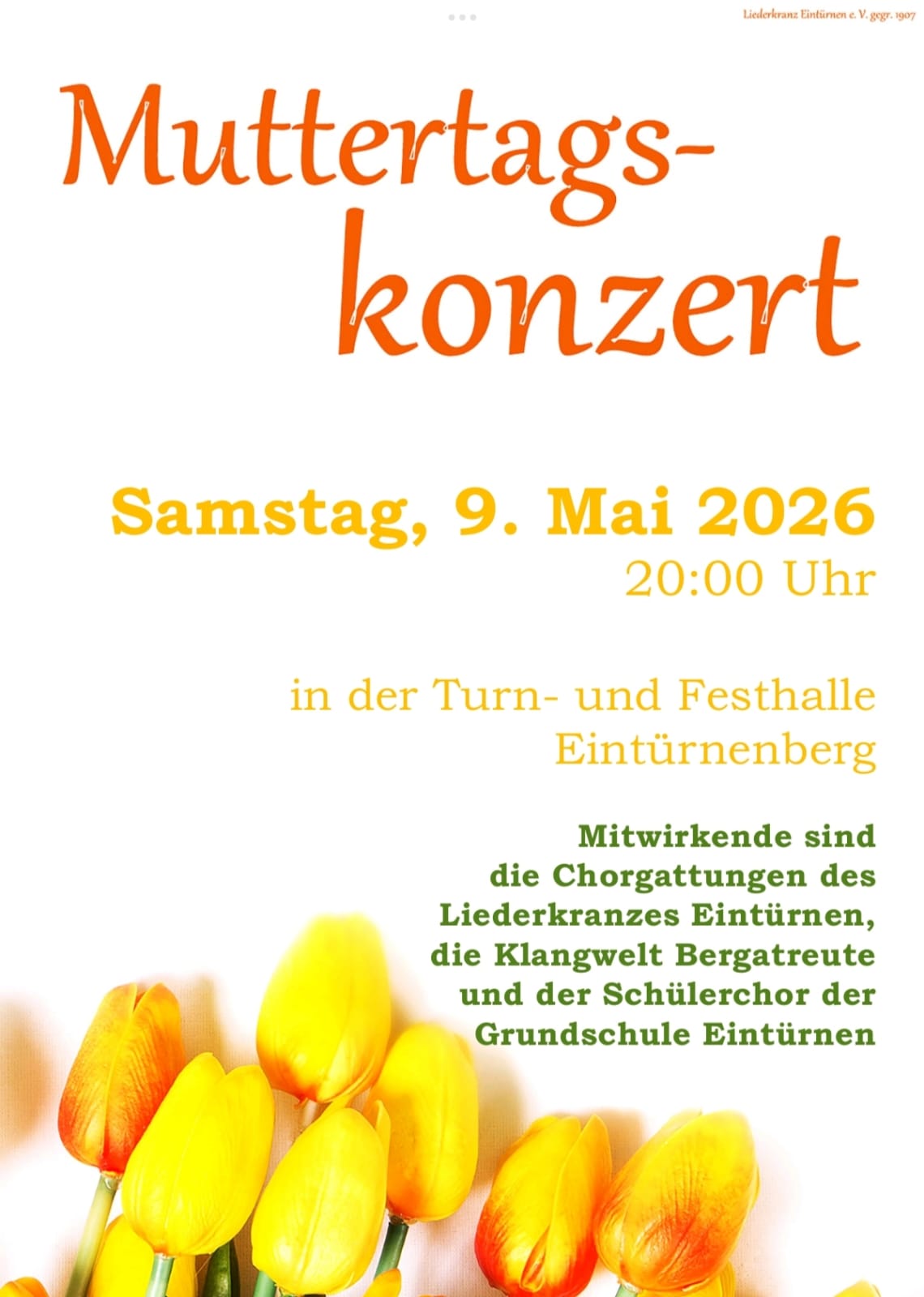 Muttertagskonzert 2026 am Sa, 09.05.2026 in der Turn- und Festhalle Eintürnenberg.